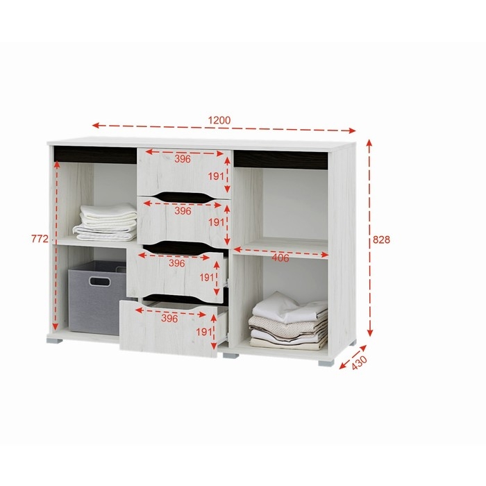 Комод Вега 1200, 1200х828х430, Крафт белый/Венге