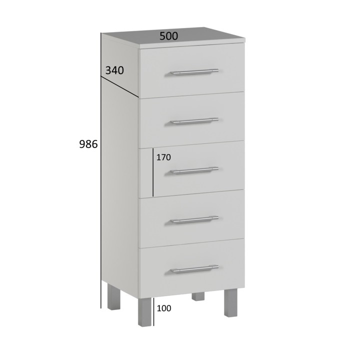 Комод высокий для ванной комнаты, белый, 50 х 34 х 98,6 см