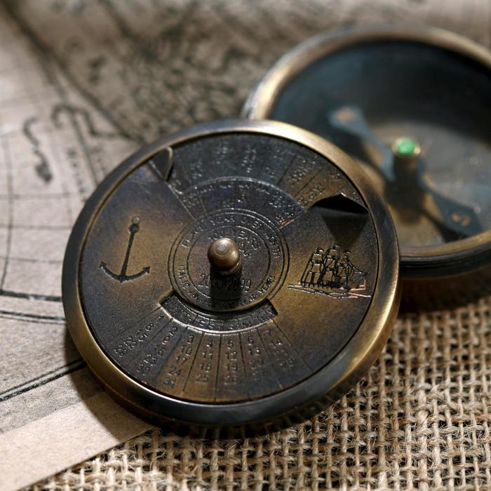 Компас латунь "Компас и календарь" 5,5х5,5х2 см