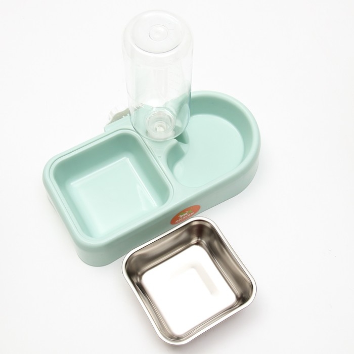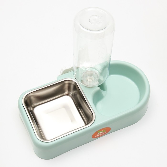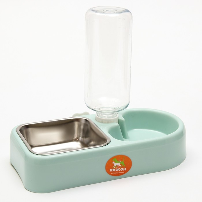 Двойная миска с автопоилкой, подходящую как для кошек, так и для маленьких пород собак! Одна часть миски предназначена для корма, а другая - для наполнения её водой, при помощи системы автопоилки. Для этого воспользуйтесь бутылкой, которая идет в комплекте, позволяющая не оставлять любимого питомца на долгое время без воды, даже в Ваше отсутствие!