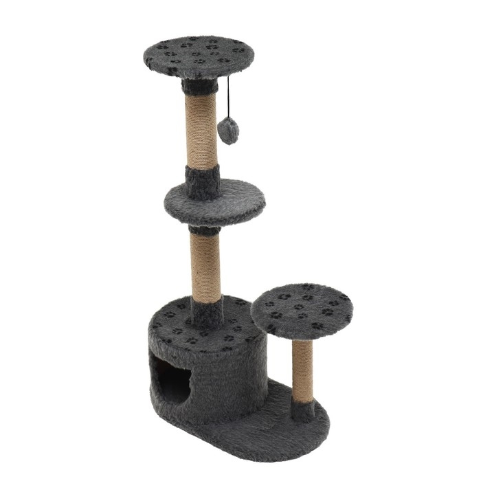 Этот круглый трёхуровневый комплекс для кошек — идеальное решение для вашего питомца, сочетающее функциональность и стиль. Выполненный в дымчатом сером цвете, он легко впишется в любой интерьер, создавая уютный уголок для отдыха и активных игр вашего любимца.