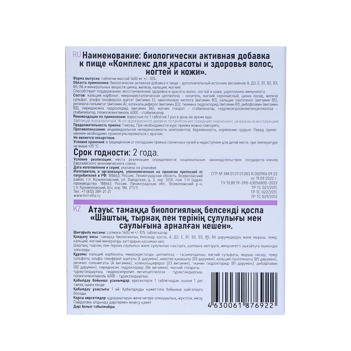 Комплекс для красоты и здоровья волос, ногтей и кожи от Mirrolla — это простой и эффективный способ поддержать естественную красоту вашего тела изнутри.