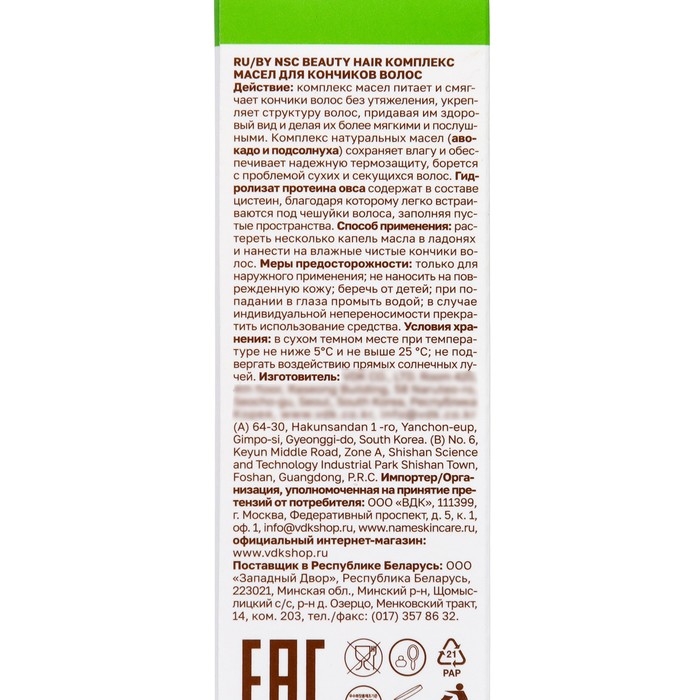 Комплекс масел питает и смягчает кончики волос без утяжеления, укрепляет структуру волос, придавая им здоровый вид и делая их более мягкими и послушными. Комплекс натуральных масел (авокадо и подсолнуха) сохраняет влагу и обеспечивает надежную термозащиту, борется с проблемой сухих и секущихся волос. Гидролизат протеина овса содержат в составе цистеин, благодаря которому легко встраиваются под чешуйки волоса, заполняя пустые пространства.
