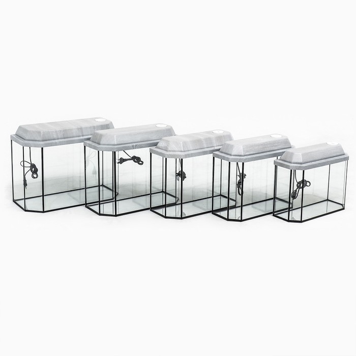 Комплект аквариумов "Матрешка" - 5 шт, Панорамные с крышками, 15 л, 20 л, 25 л, 30 л, 40 л