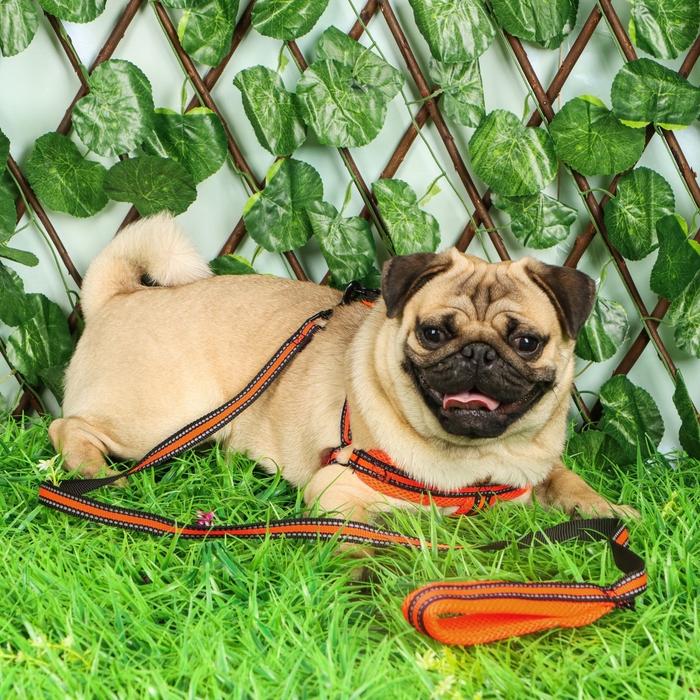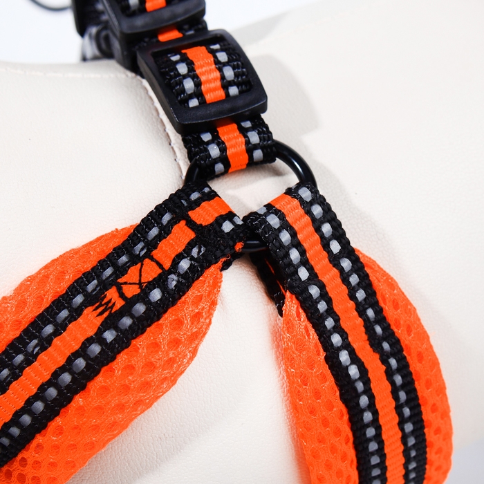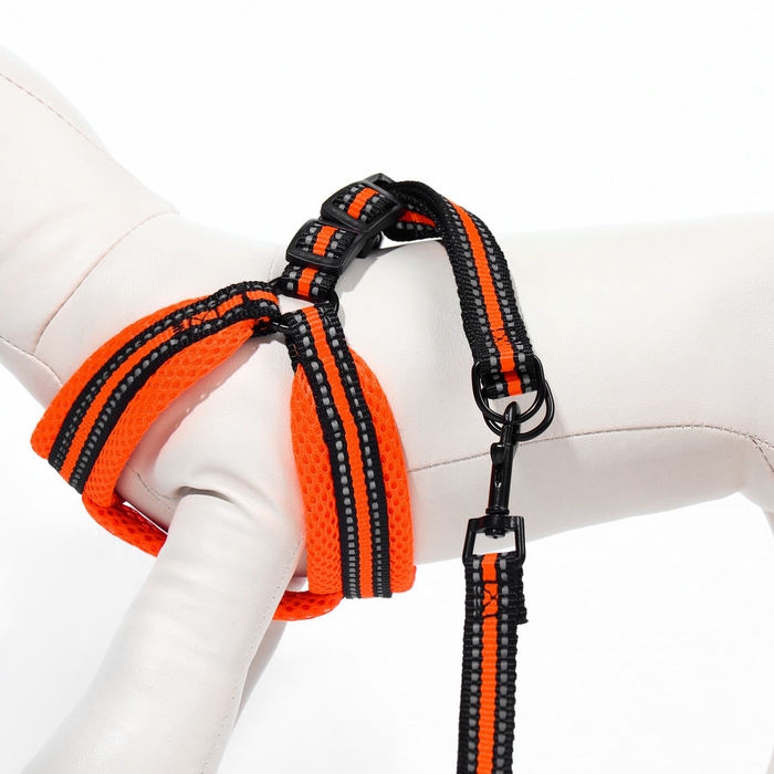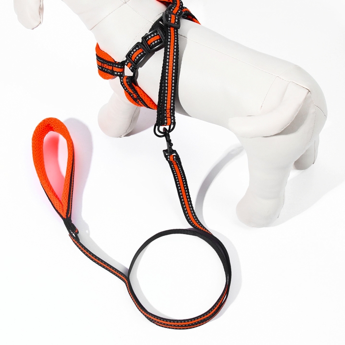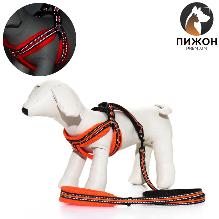 Комплект амуниции мягкий, светоотражающий, поводок 120 х 1,5 см, ОШ 35-53 см, оранжевый