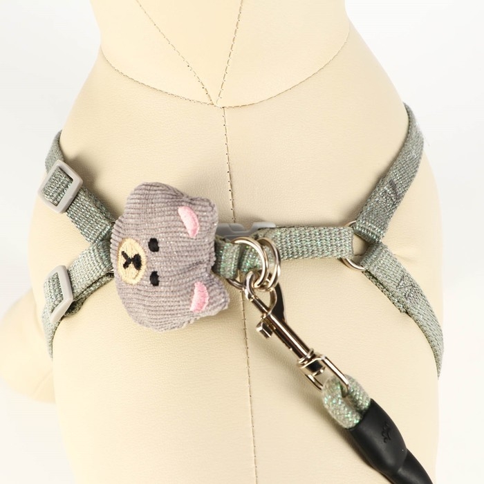 Яркий прогулочный комплект для собак с украшением в виде игрушки. Шлейка регулируется, поводок круглый прочный , ручка поводка не доставляет неудобств для вас при натежении. Ремни шлейки не давят на грудь и шею а равномерно распределяют нагрузку. Шлея для собак 3 , 5 , 10 , 15, 20 кг мелких пород и кошек . Шлейка текстильная , регулируется пластиковыми креплениями. Поводок крепится к металлическому кольцу карабином. На спине амуниция фиксируется застежкой из пластика. Шлейка исключит побег животного, если правильно подобрать размер и отрегулировать ремни.