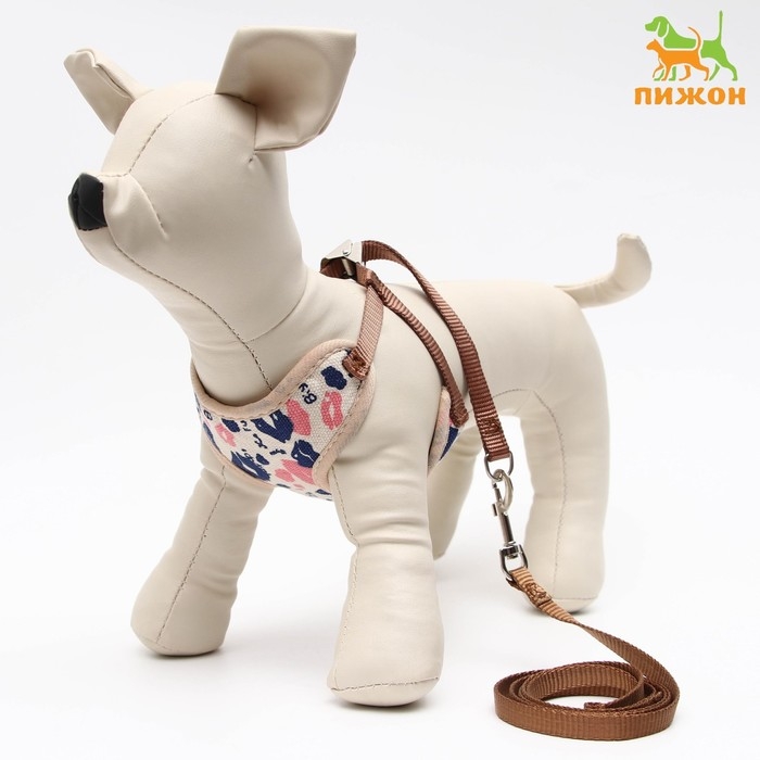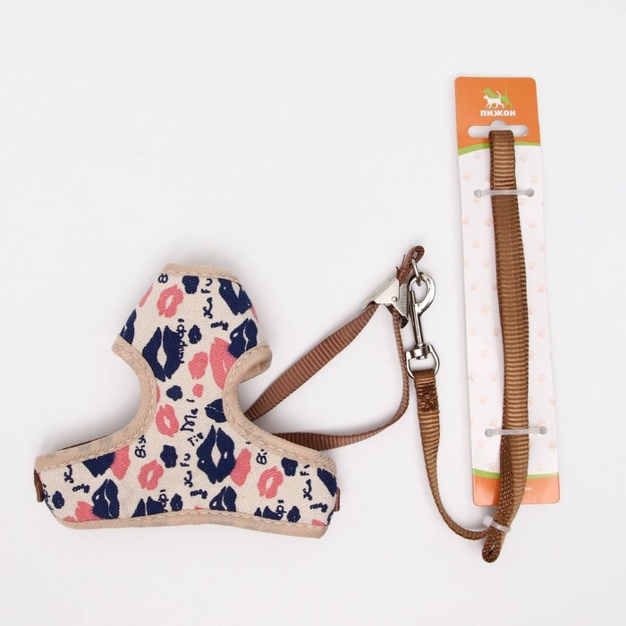 Комплект амуниции с мягкой шлейкой "Поцелуи", поводок 120 х 1 см, розовый