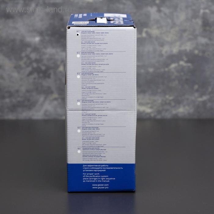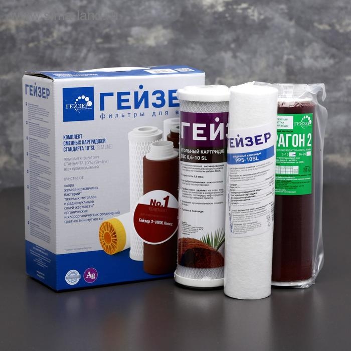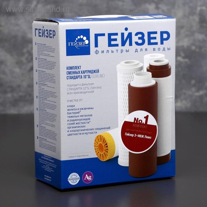 Комплект сменных картриджей № 1 предназначен для фильтра «Гейзер. 3 ИВЖ Люкс» (средний уровень минерализации воды).