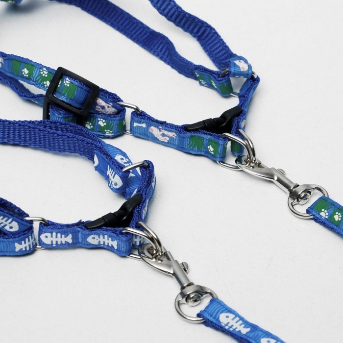 Комплект амуниции с мягкой шлейкой, поводок 120 х 1 см, ОШ 28-54 см, ОГ 36-60 см, серо-голубой