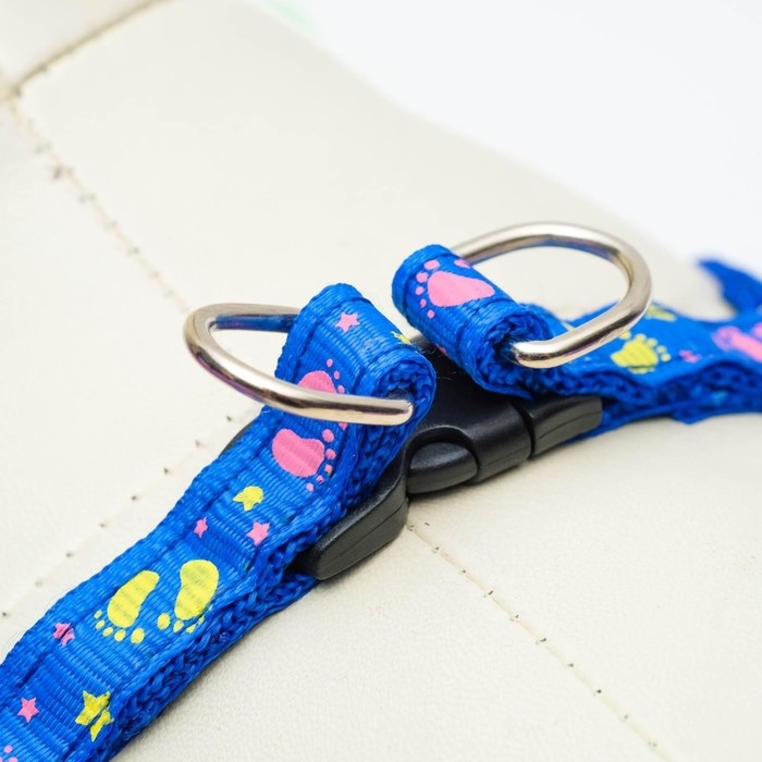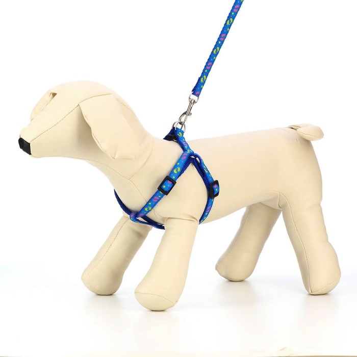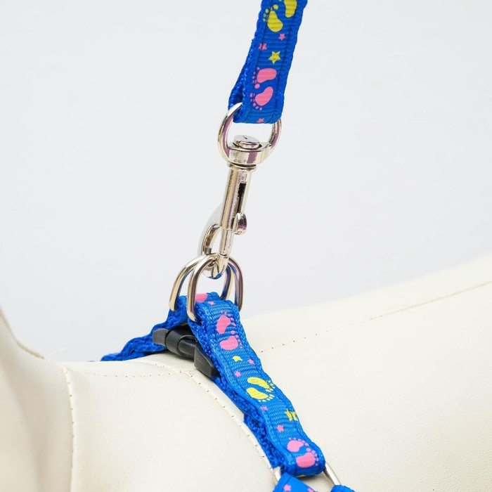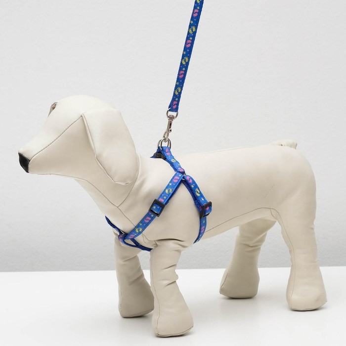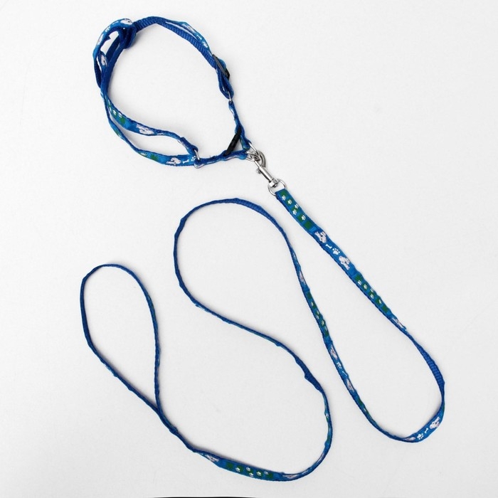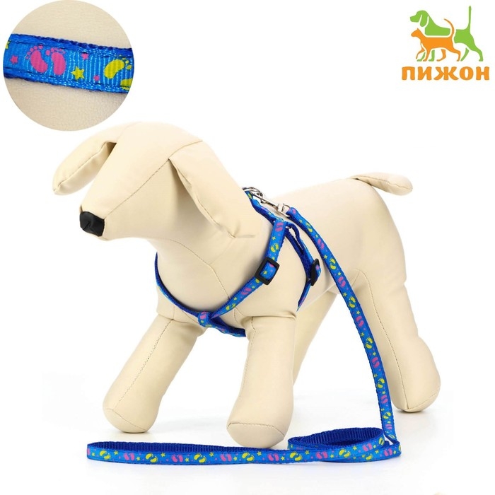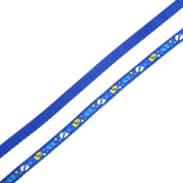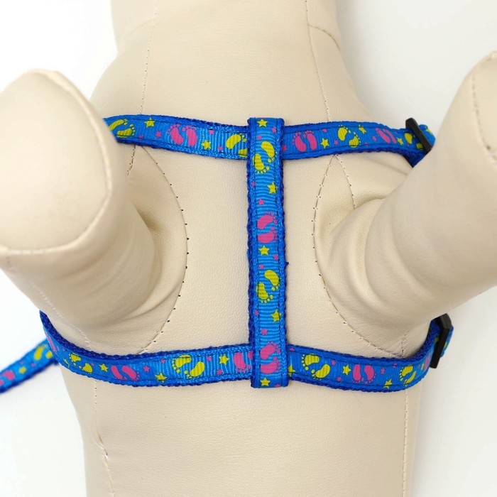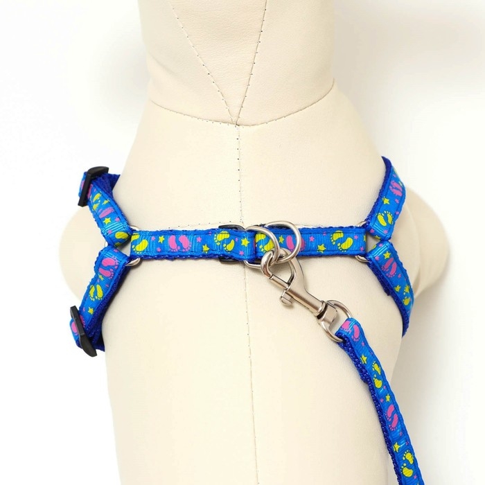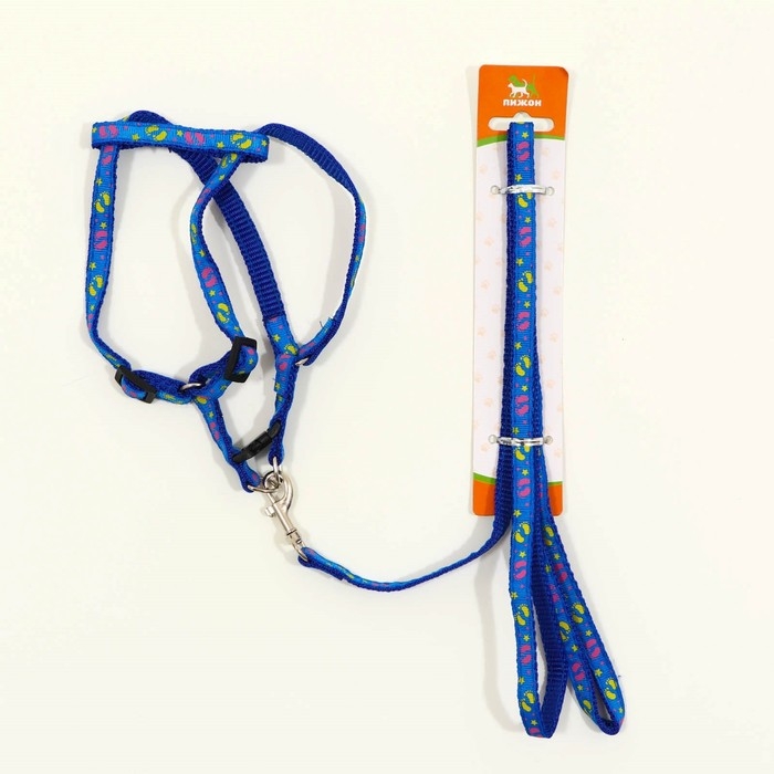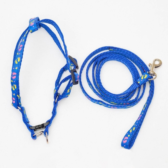 Комплект "Цветные следы", ширина 1 см, поводок 120 см, шлейка 23-35 см, синий