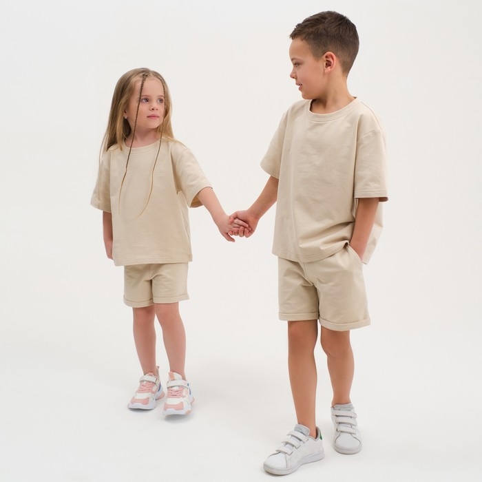 Комплект детский (футболка, шорты) KAFTAN "Basic line" размер 30 (98-104), цвет бежевый