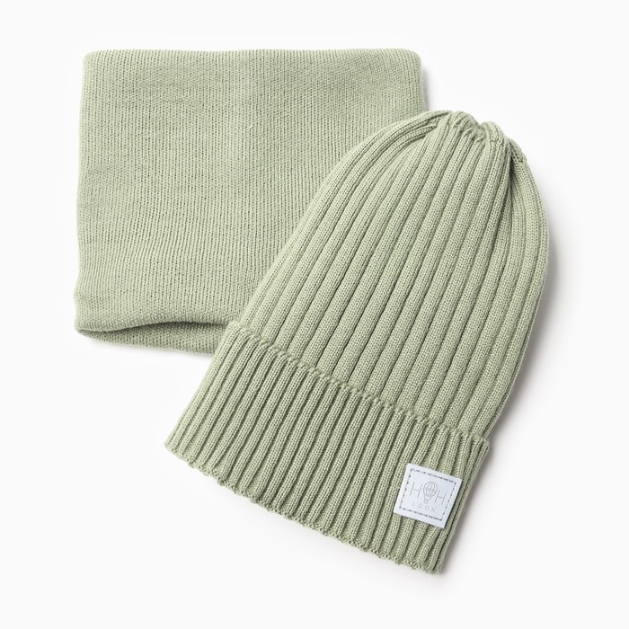 Комплект детский (шапка, снуд), цвет хаки, размер 52-56