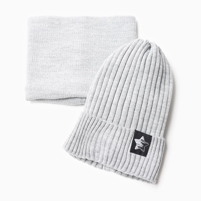 Комплект детский (шапка, снуд), цвет серый, размер 48-52