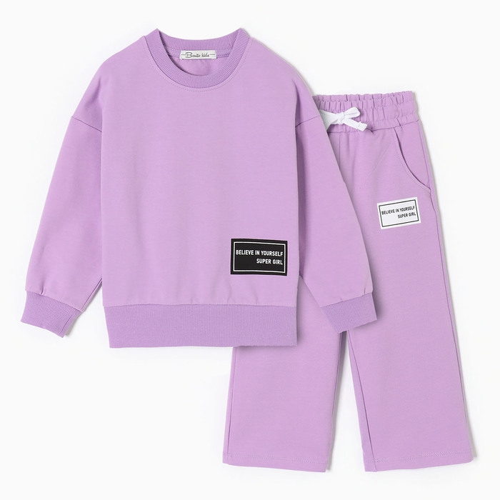 Комплект для девочек (свитшот, брюки), цвет фиолетовый, рост 98 см
