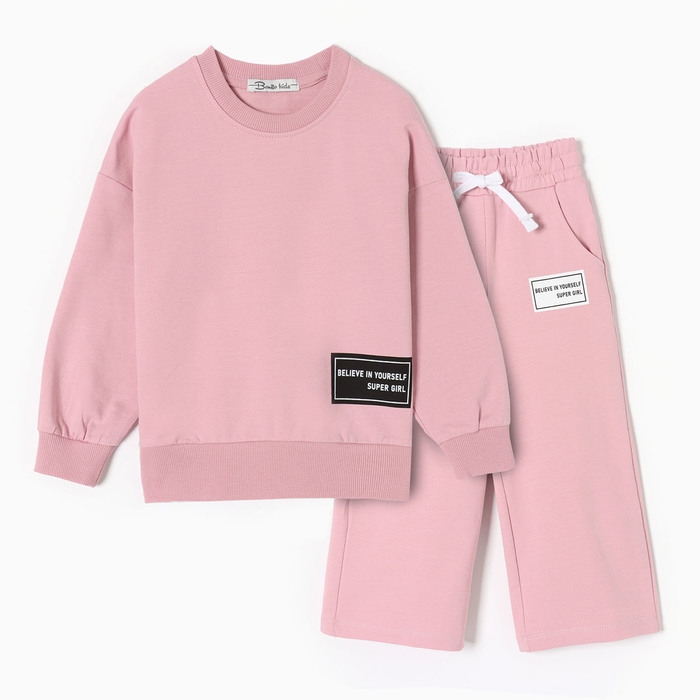 Комплект для девочек (свитшот, брюки), цвет грязно-розовый, рост 104 см