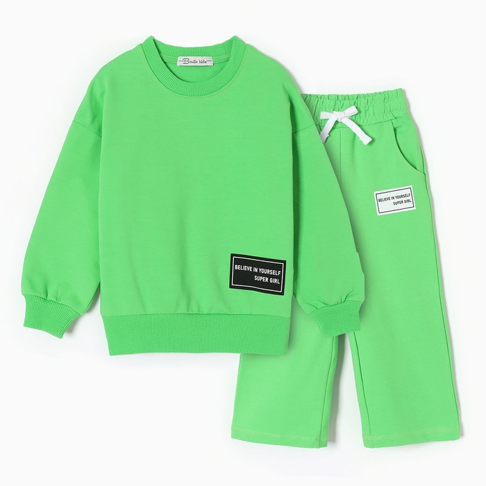 Комплект для девочек (свитшот, брюки), цвет салатовый, рост 104 см