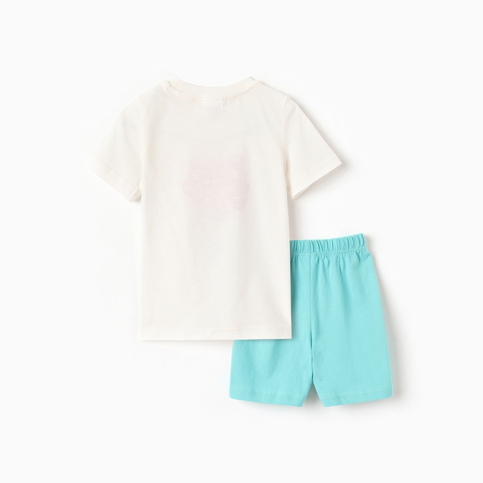 Комплект для девочки "Девочка" (футболка/шорты), цвет молочный/бирюзовый, рост 110-116 см