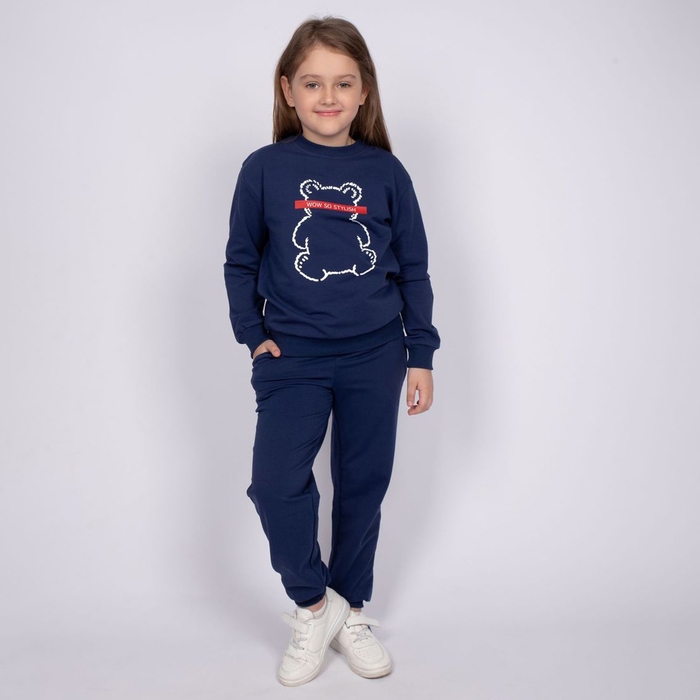 Комплект для девочки (джемпер, брюки), цвет тёмно-синий, рост 110 см