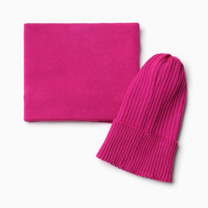 Комплект для девочки (снуд и шапка), цвет малина, размер 52-56