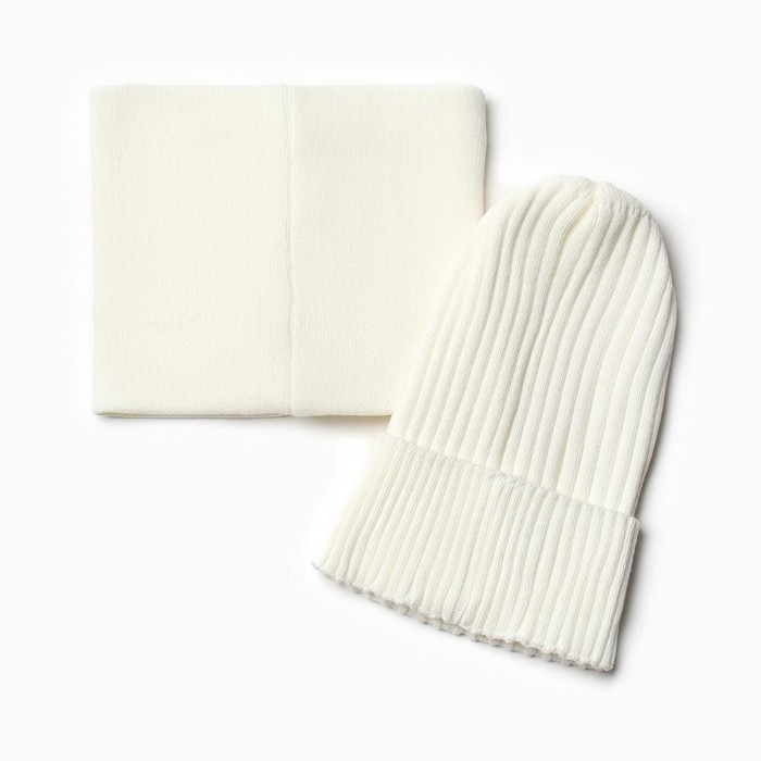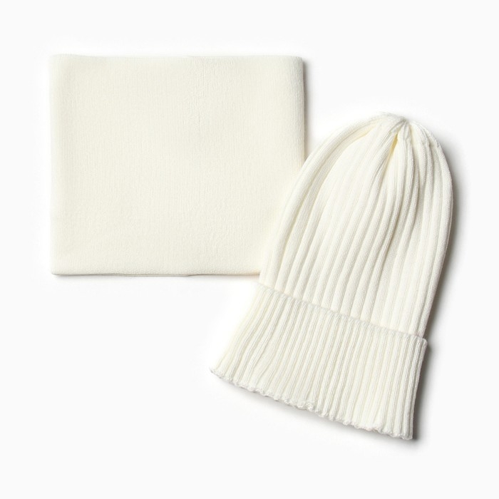 Комплект для девочки (снуд и шапка), цвет молочный, размер 48-52