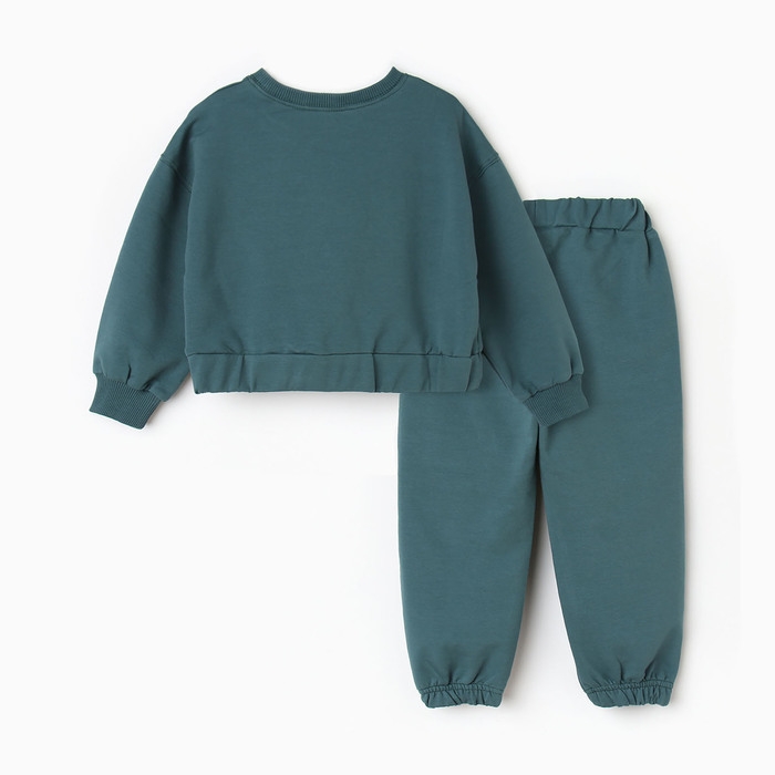 Комплект для девочки (свитшот, брюки), цвет тёмно-зелёный, рост 110 см