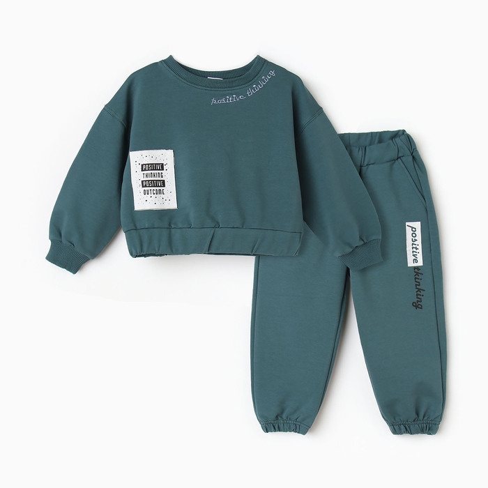 Комплект для девочки (свитшот, брюки), цвет тёмно-зелёный, рост 122 см