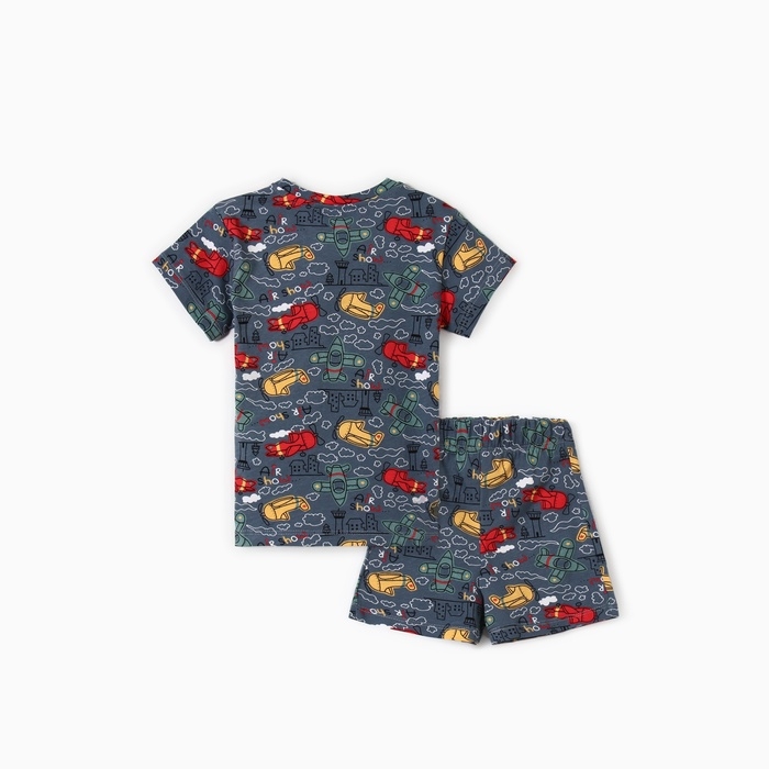Комплект для мальчика домашний (футболка/шорты) "Самолёты", цвет серый, рост 110