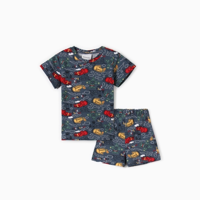 Комплект для мальчика домашний (футболка/шорты) "Самолёты", цвет серый, рост 116