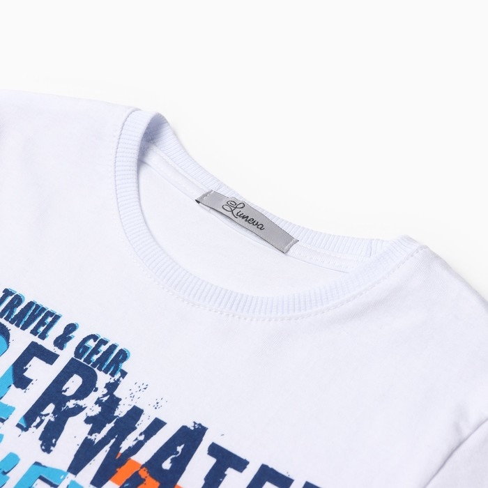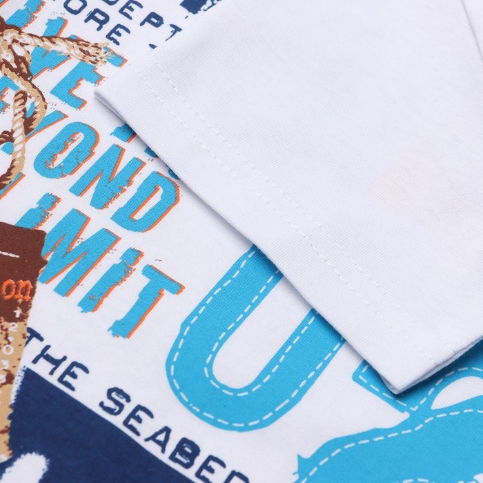 Комплект для мальчика (футболка/шорты), цвет белый/синий, рост 128 см