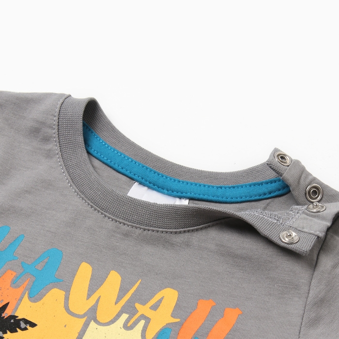 Комплект для мальчика (футболка/шорты), цвет серый/морской, рост 74 см
