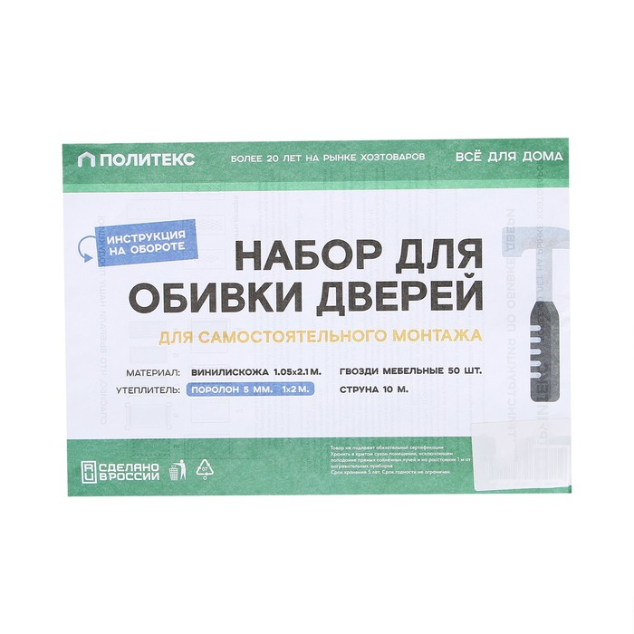 Комплект для обивки дверей 110 × 205 см: иск.кожа, поролон 5 мм, гвозди, струна, МИКС, «Рулон»