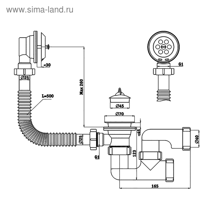 Комплект для ванны "АНИ Пласт" E250: сифон с поворотным коленом