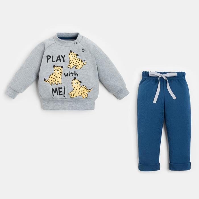 Комплект: джемпер и брюки Крошка Я «Леопарды», цвет серый/синий, рост 68-74 см