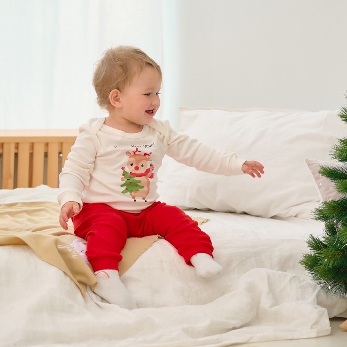 Комплект: джемпер и брюки Крошка Я «Новогодние зверята», рост 80-86 см, цвет красный/белый
