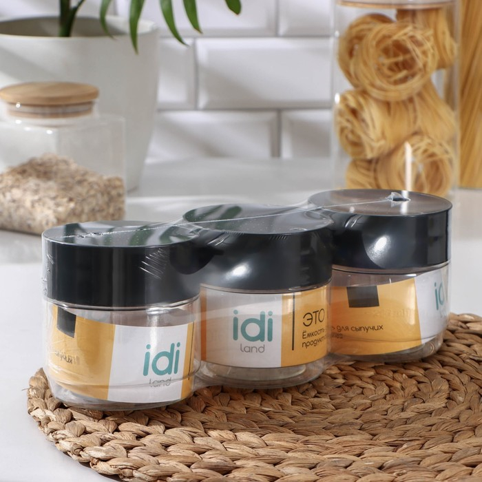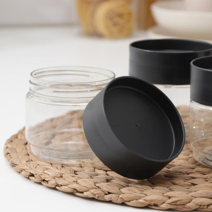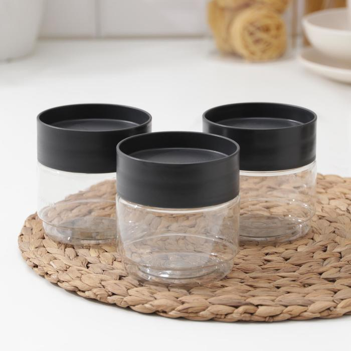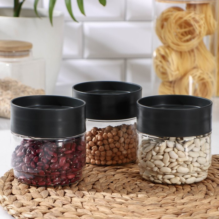 Комплект ёмкостей для сыпучих продуктов, 3 предмета, 500 мл, прозрачныый, крышка черная