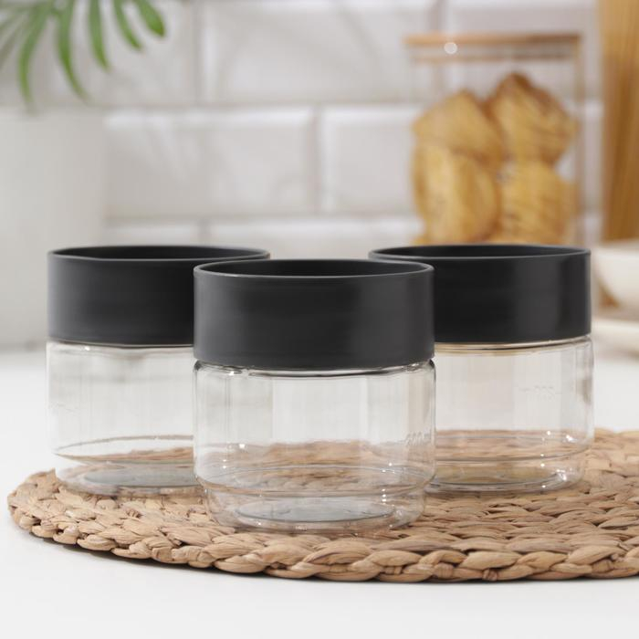 Банки стеклянные для хранения сыпучих продуктов «Блеск», 200 мл, с пластмассовой крышкой, 4 шт