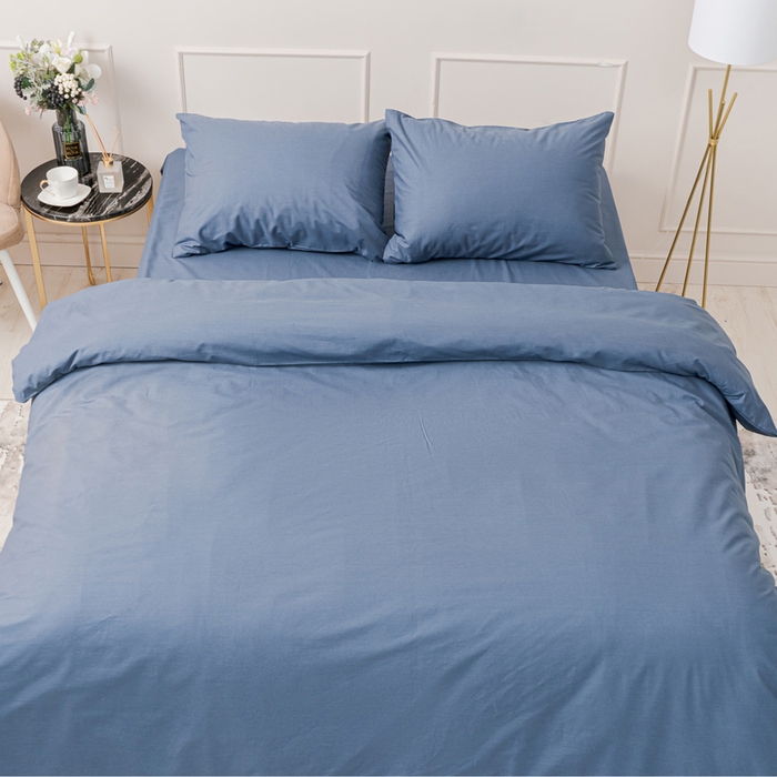 Комплект IDEASON 2сп (под 175х215см, навол 50х70см 2шт)синий, поплин 130г/м, хл100%