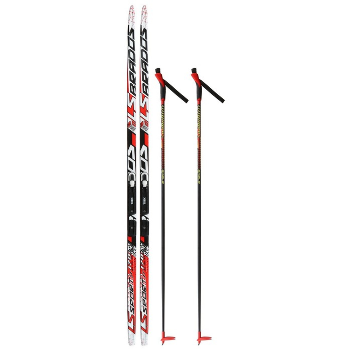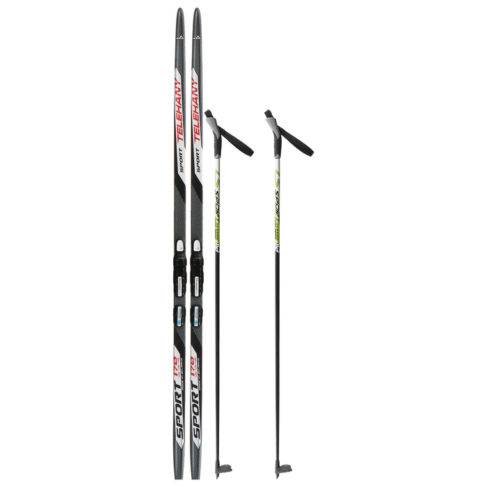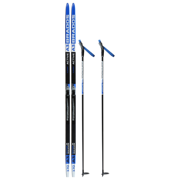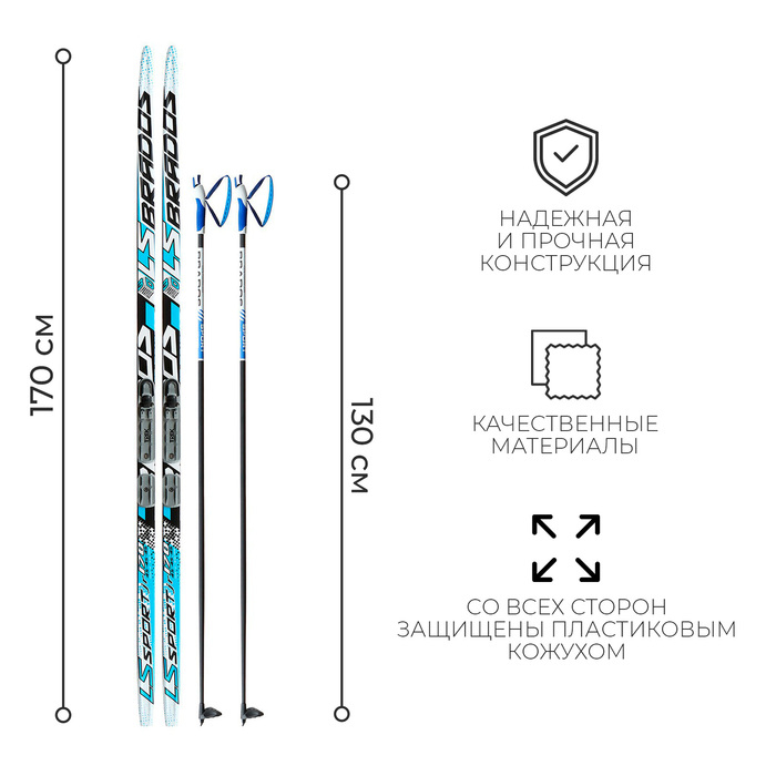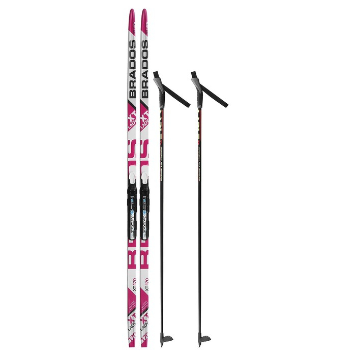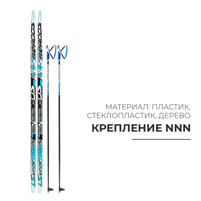 Комплект лыжный: пластиковые лыжи 170 см без насечек, стеклопластиковые палки 130 см, крепления NNN, цвета МИКС