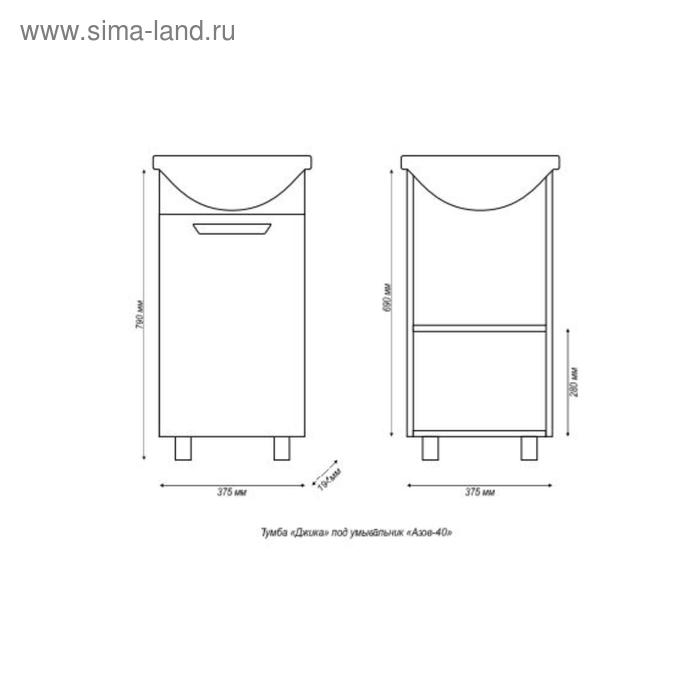 Комплект мебели для ванной комнаты: Тумба "Джика" + раковина "Азов-40", 41 х 79 х 29 см