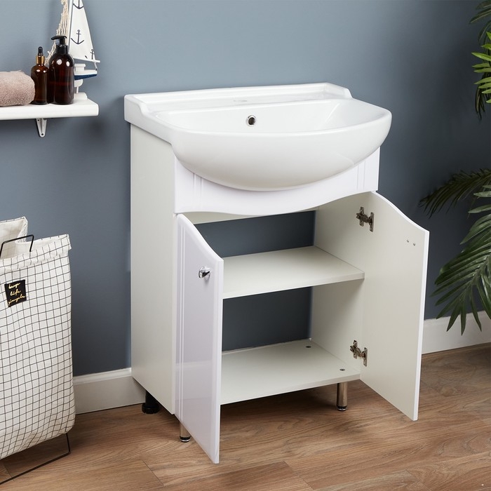 Комплект мебели для ванной комнаты "Гармония 55": тумба с раковиной + зеркало-шкаф