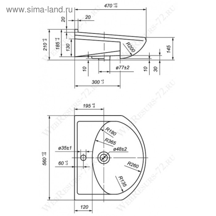 - Ширина раковины: 550 мм.