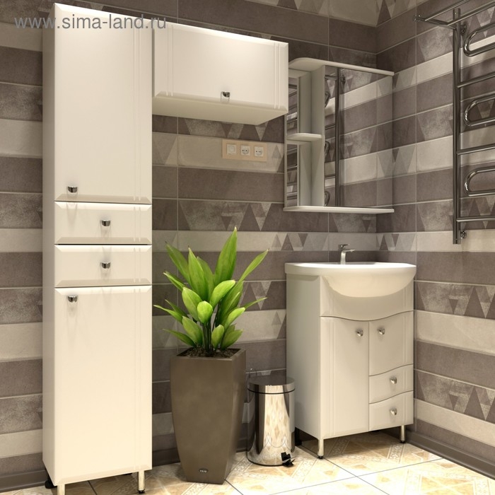 Тумба «Тура» — стильное и практичное приобретение для ванной комнаты. Как показано на фото, данная модель выполняет функции шкафа для гигиенических принадлежностей.