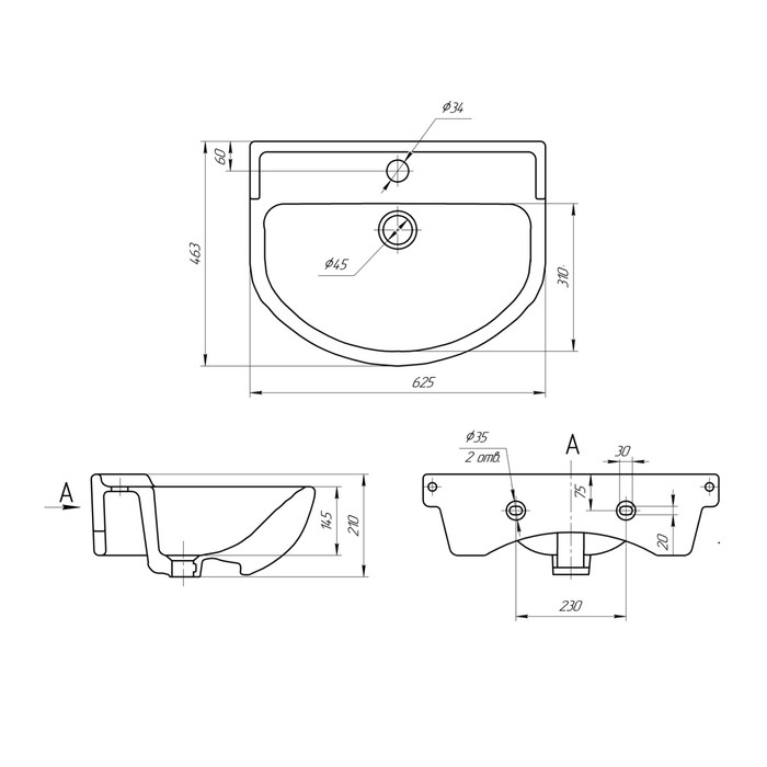 Комплект мебели: Тумба "Тура 60" + раковина "Амур 60", 60 х 45,5 х 82 см