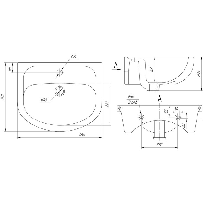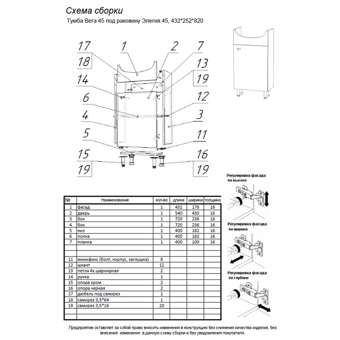 Комплект мебели: Тумба "Вега 45" + раковина "Уют-450", 47 х 37,5 х 85 см