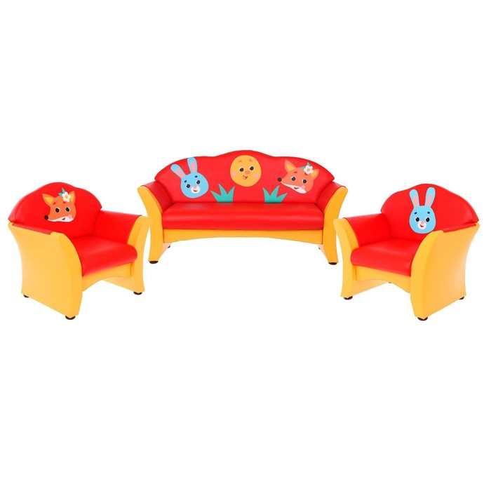 Комплект мягкой мебели послужит функциональным украшением для детской комнаты.