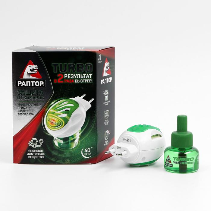 Комплект от комаров "Раптор" Turbo, фумигатор+жидкость, 40 ночей