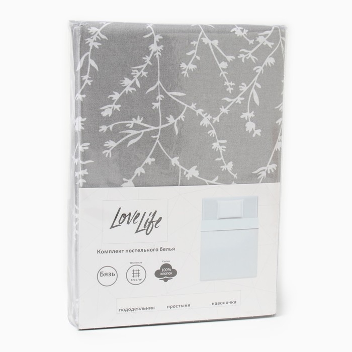 Комплект постельного белья LoveLife 1.5 сп "Ветви" цв.серый, 147*210,150*215,70*70 -1 шт,100% хлопок,бязь 120 г/м2