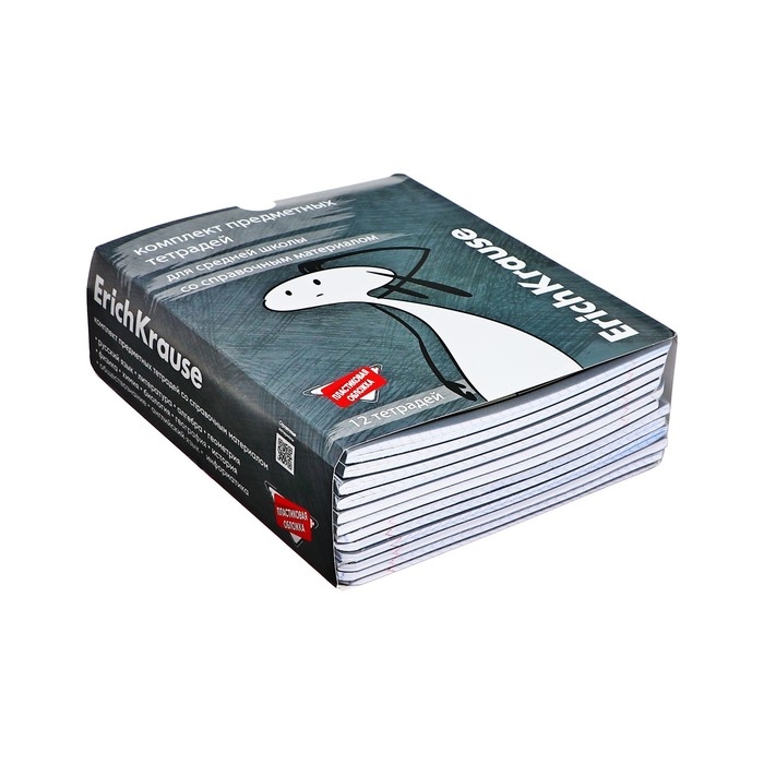 Комплект тетрадей по 12 основным учебным предметам: русский язык, литература, алгебра, геометрия, физика, химия, биология, география, история, обществознание, английский язык, информатика. Удобный вариант для приобретения на целый учебный год или в подарок. Каждая тетрадь объемом 48 листов имеет инфо-блок на 2 страницы с кратким изложением школьной программы. Упаковка - картонная обечайка в термоусадочной пленке.