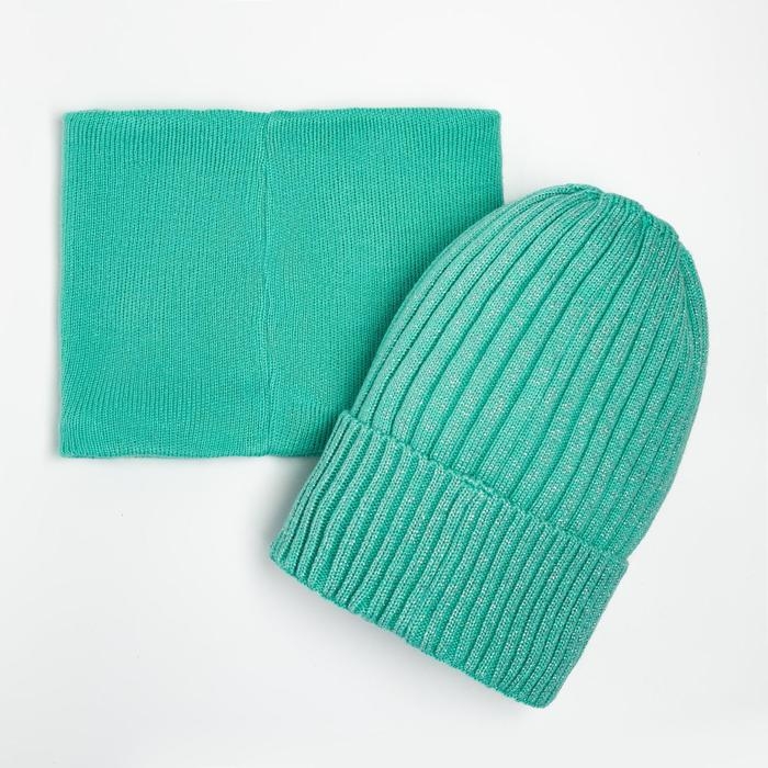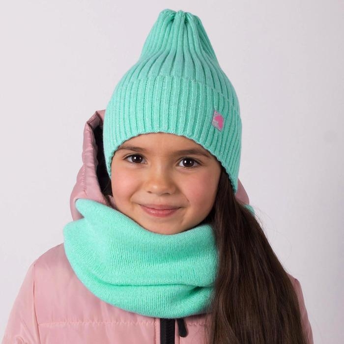 Комплект (шапка,снуд) для девочки, цвет мята/единорог, размер 48-52