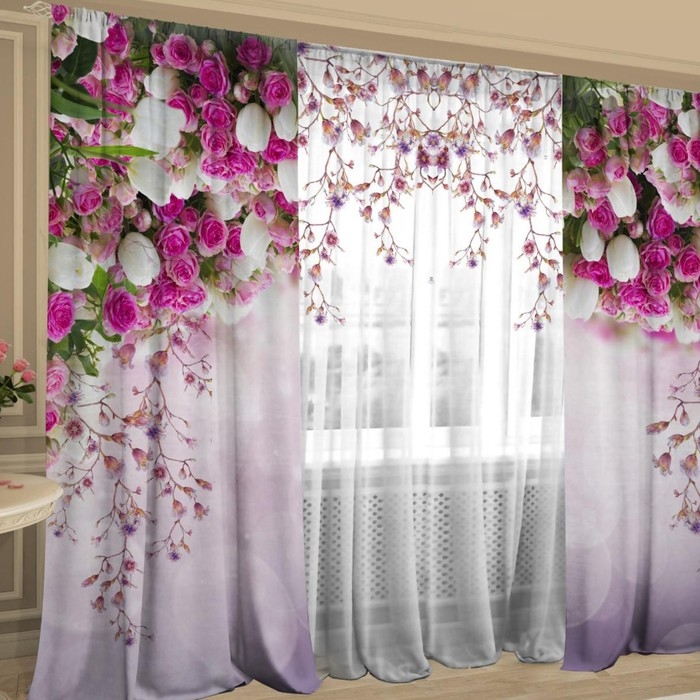 Комплект штор Баланс цветов, шторы 147х267см-2 шт, тюль 147х267см, габардин, пэ 100%